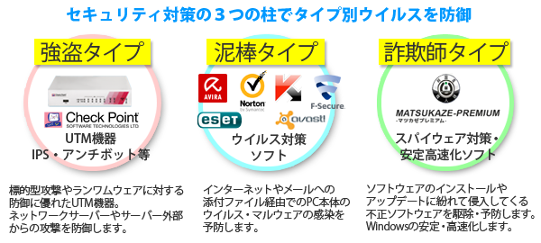ウイルスタイプは、強盗タイプ・泥棒タイプ・詐欺師タイプの3タイプが存在します。